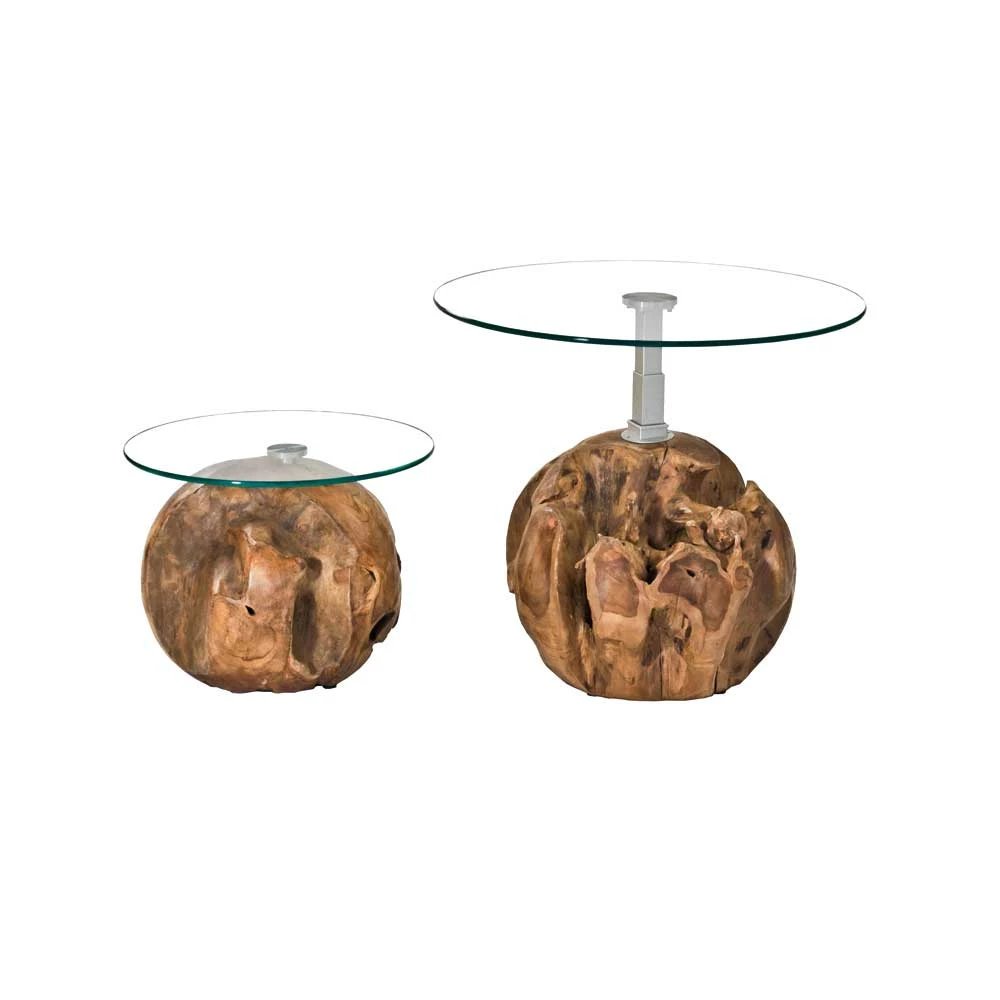 - Untergestelle sind Kugeln aus natürlichem Teak Wurzelholz mit einem Durchmesser von ca. 50 und 40 cm