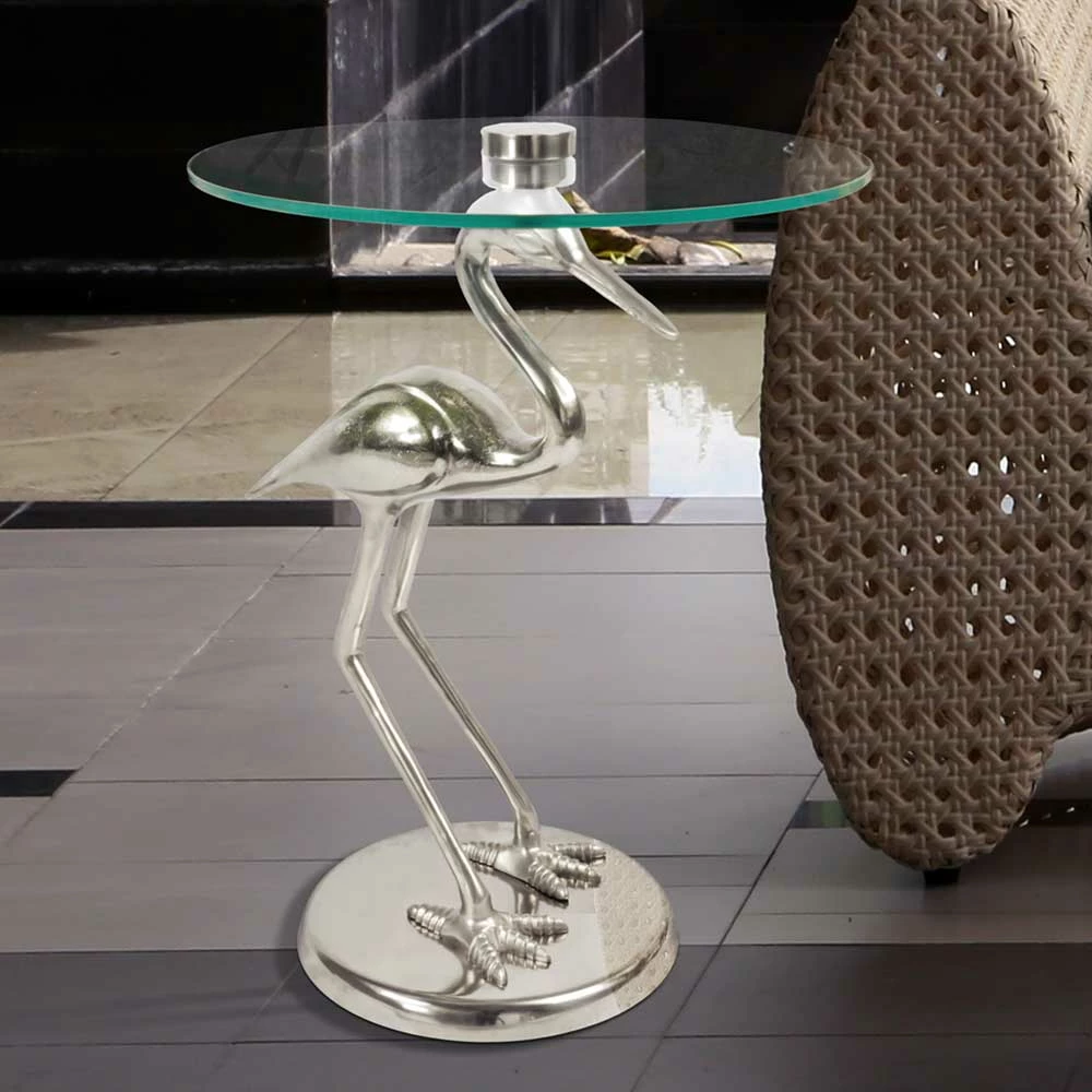 40x58x40 Runder Glas Tisch Mit Vogel Säulenfuß – Prasido