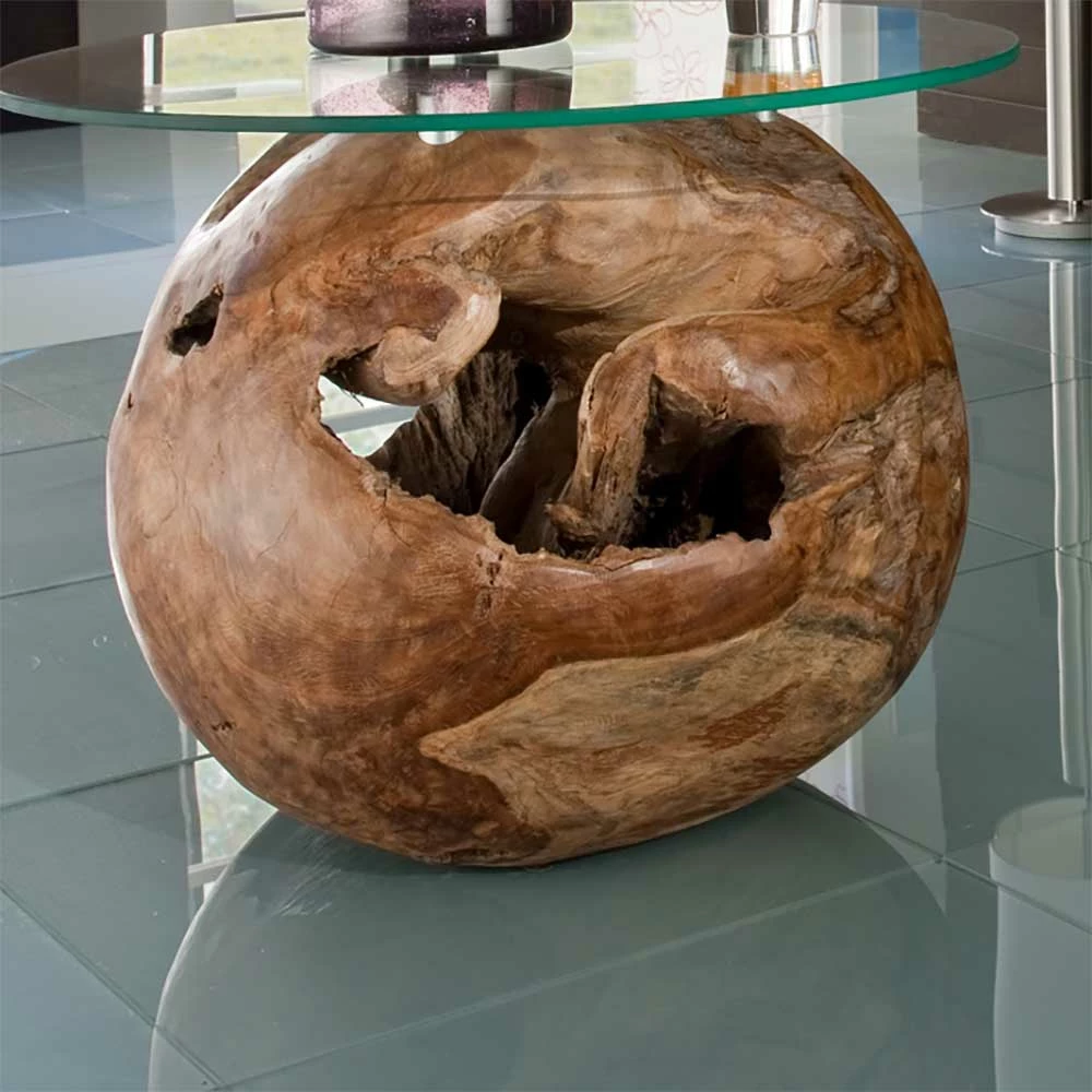 - Natürlich geformter Fuß aus Teak, jedes Stück fällt ein wenig anders aus