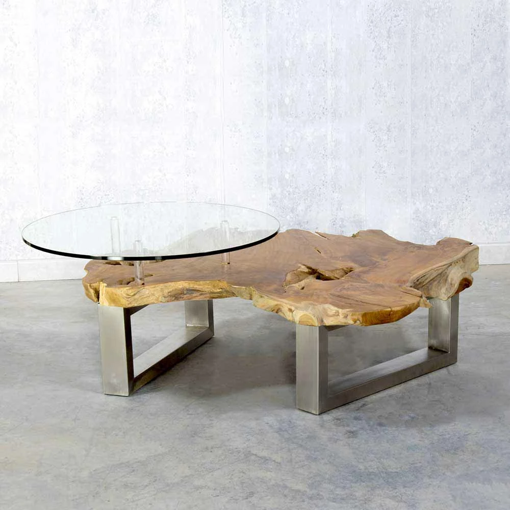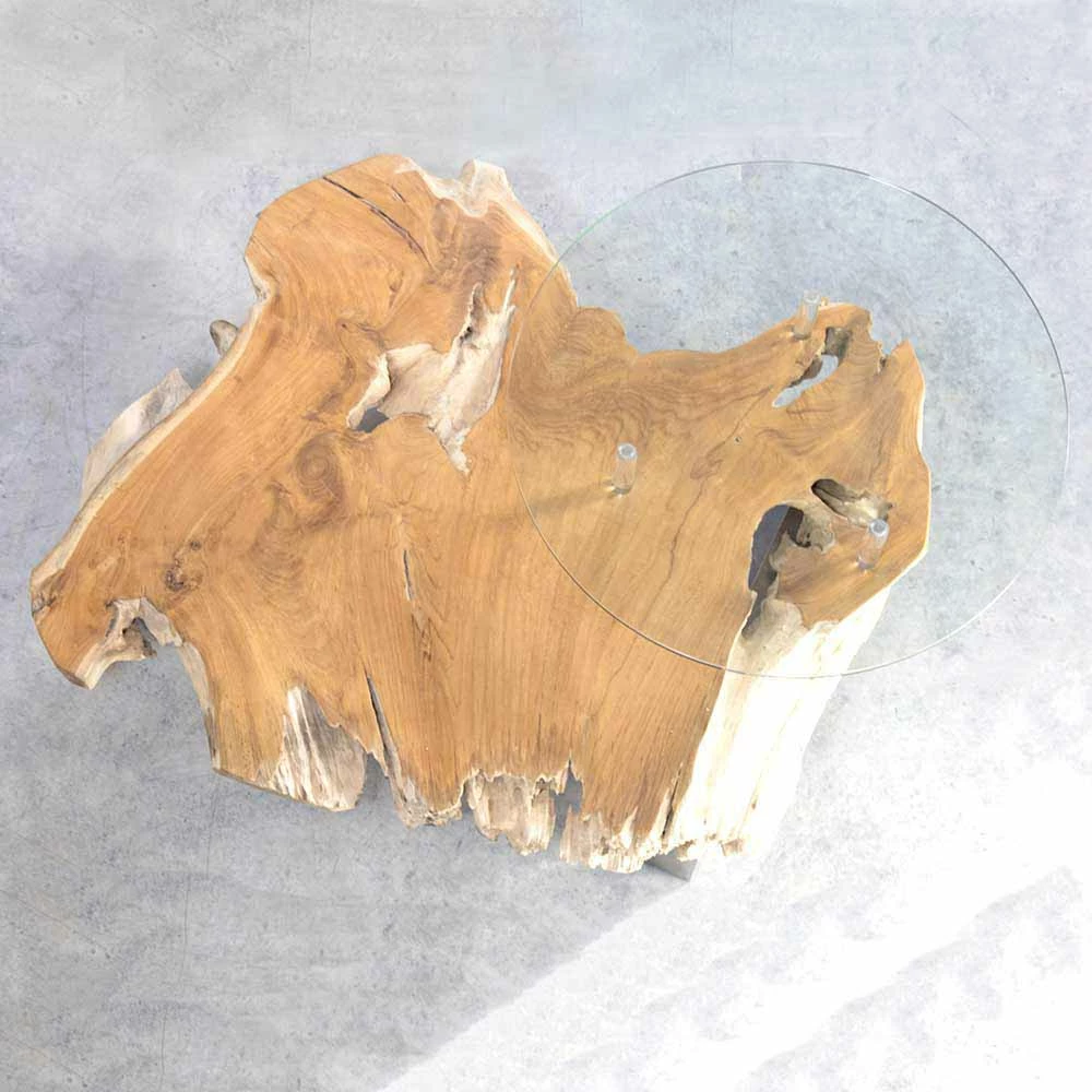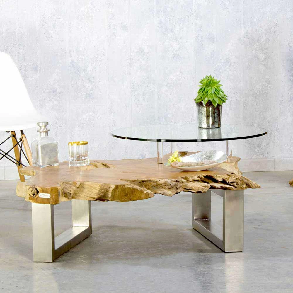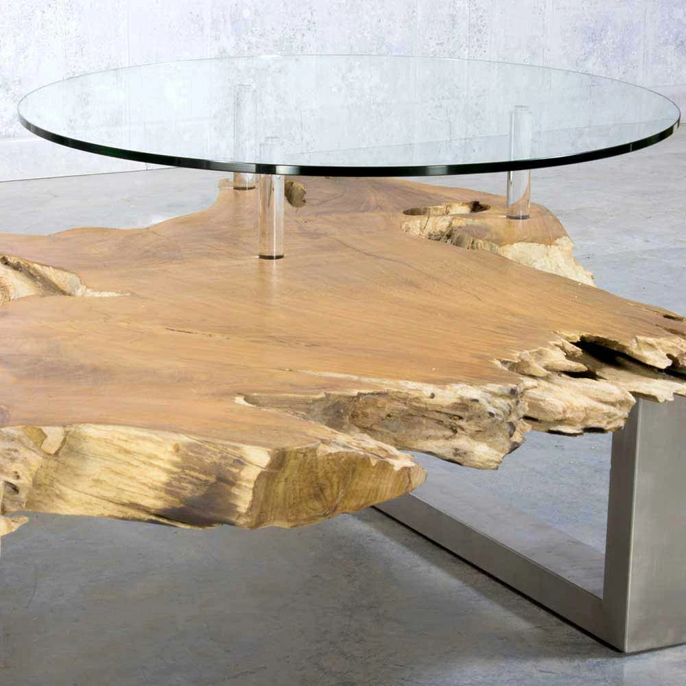Baumkanten Designertisch Oltervas Mit Extra Glasplatte Rund