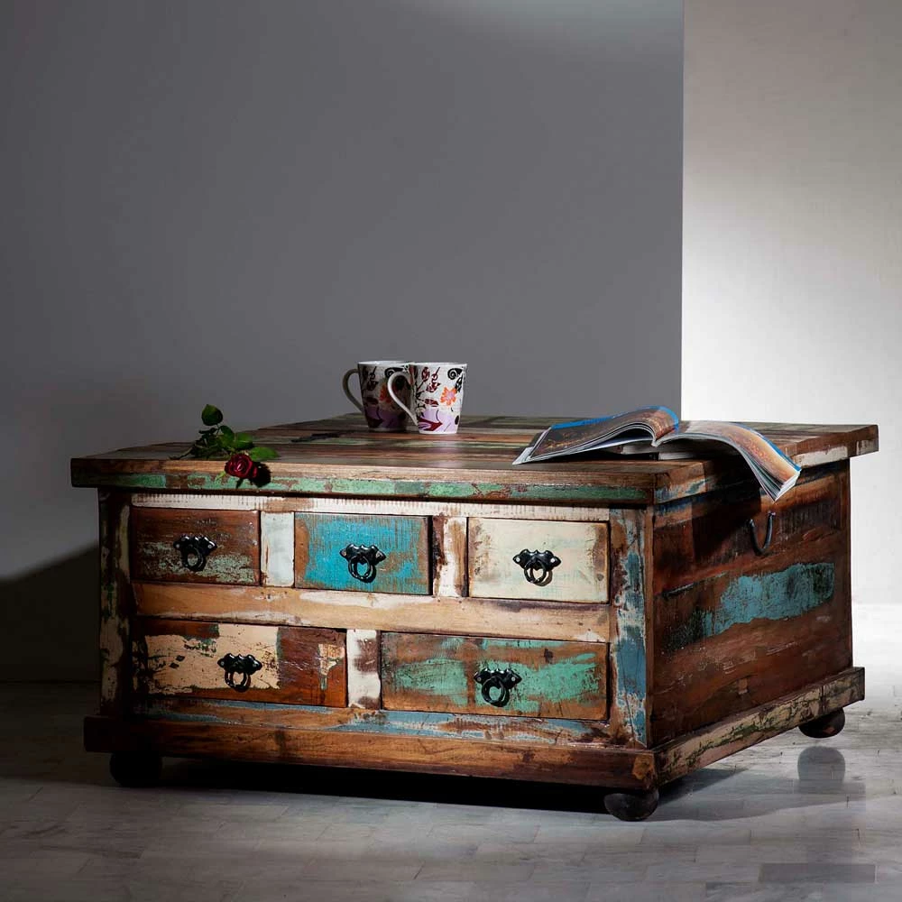 - Ausgefallener Couchtischtruhe in Braun-Bunt