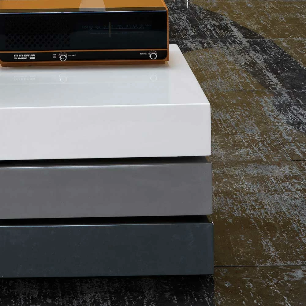 - Toller dreifarbiger Tisch in Weiß/Grau