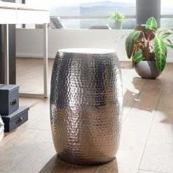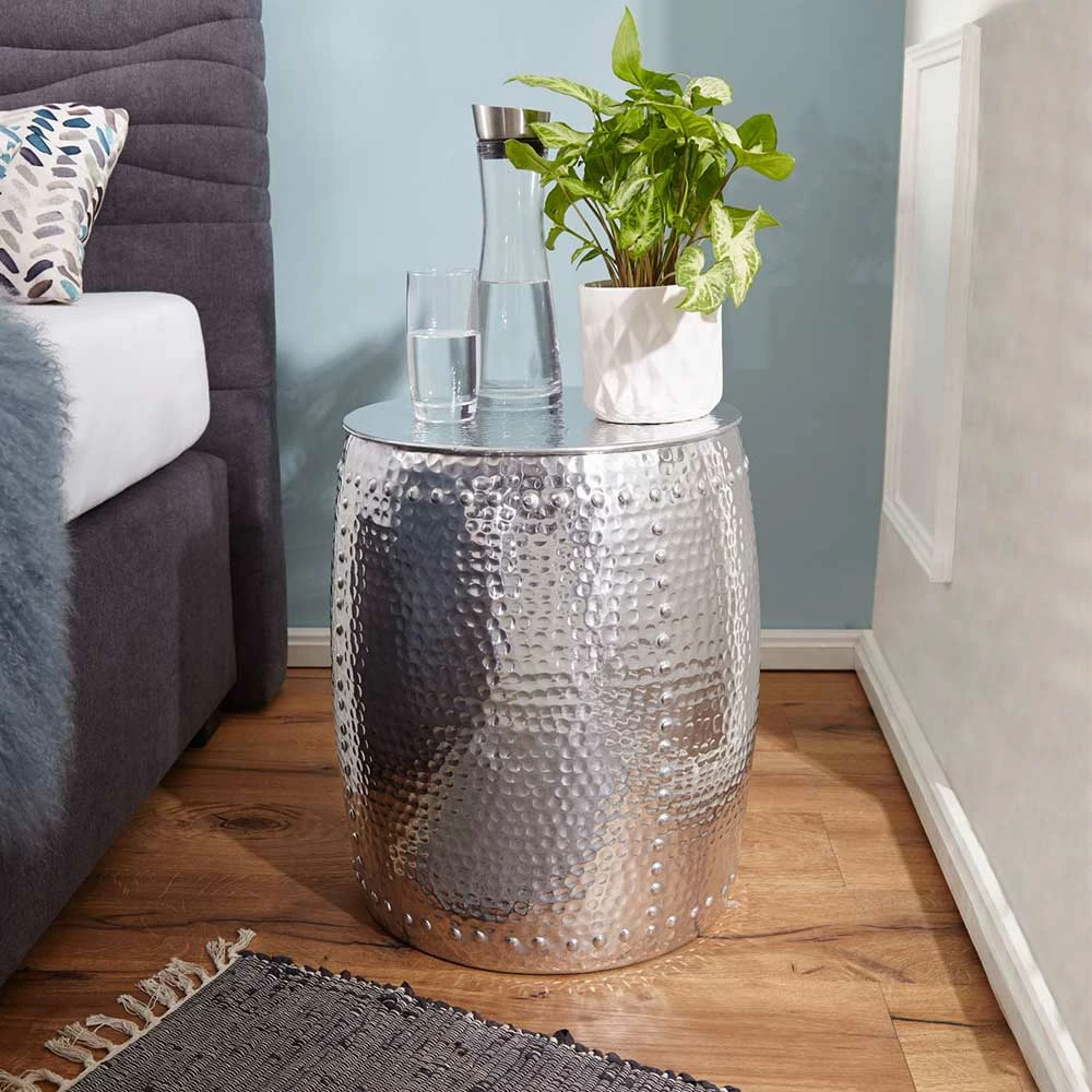 Handgearbeiteter Alu-Beistelltisch In Silber – Wake