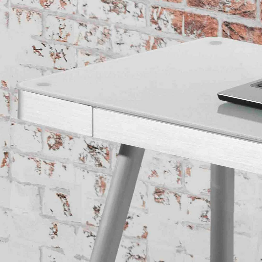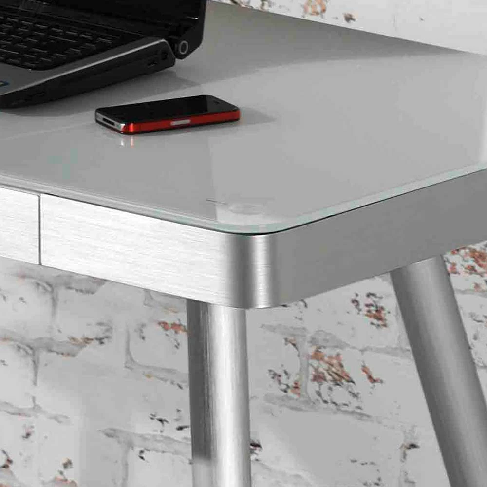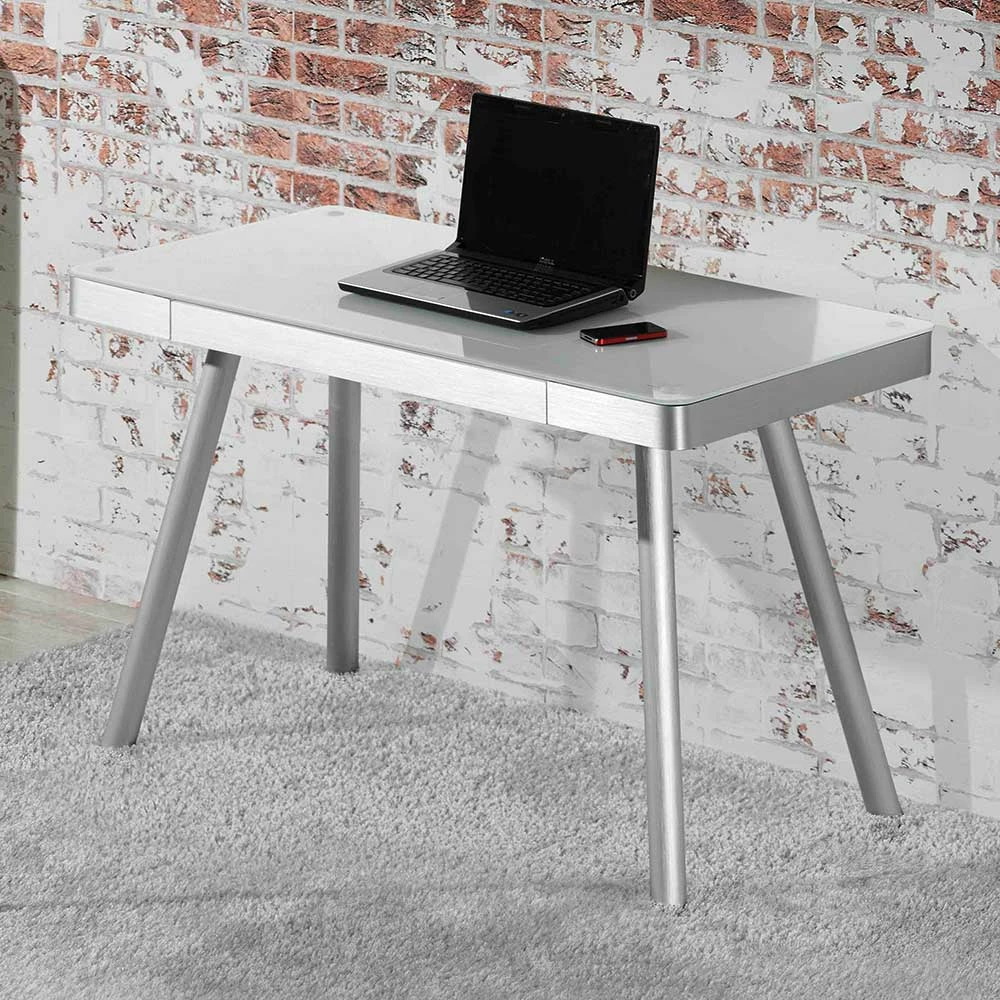 - Moderner Schreib- und Computertisch in Weiß und Alufarben