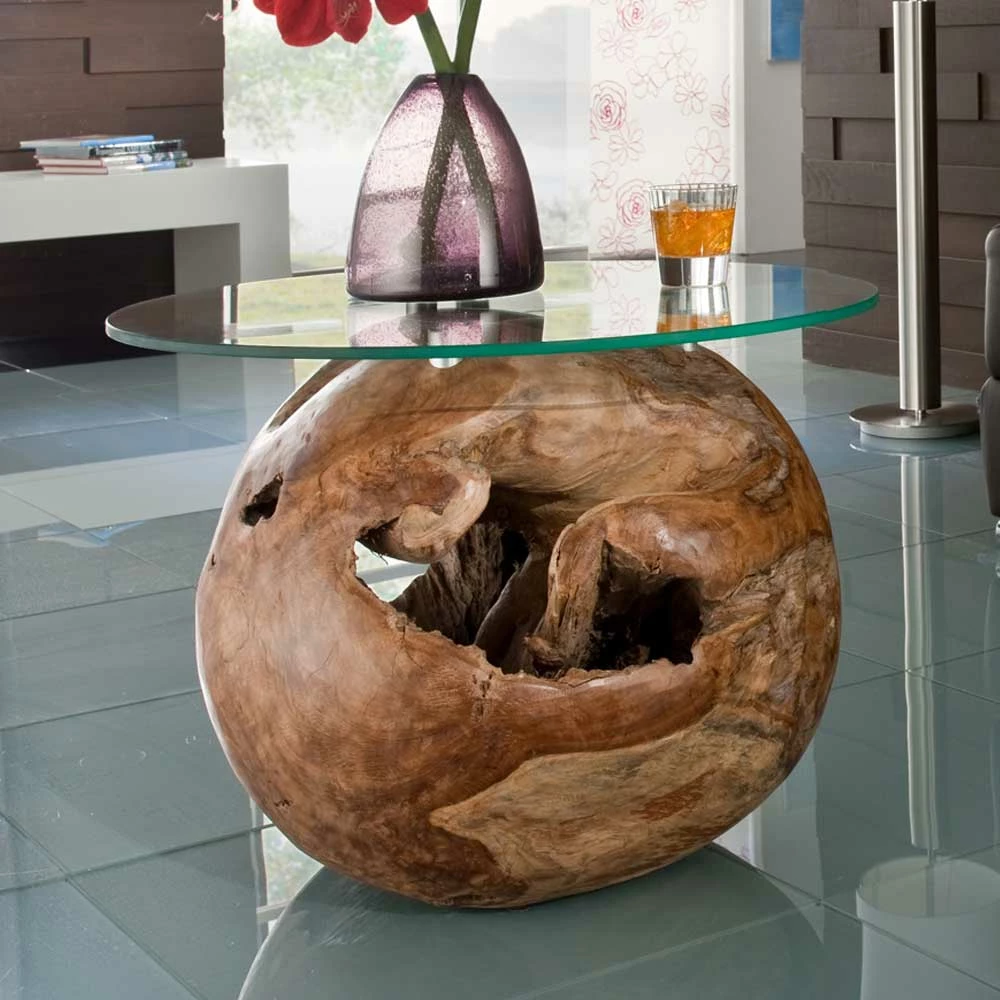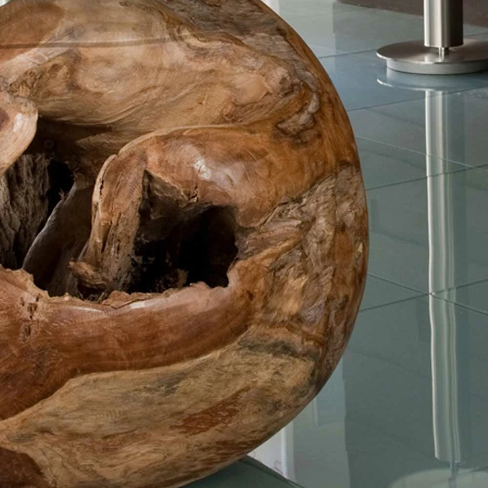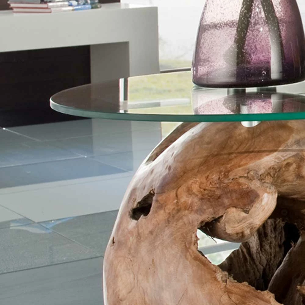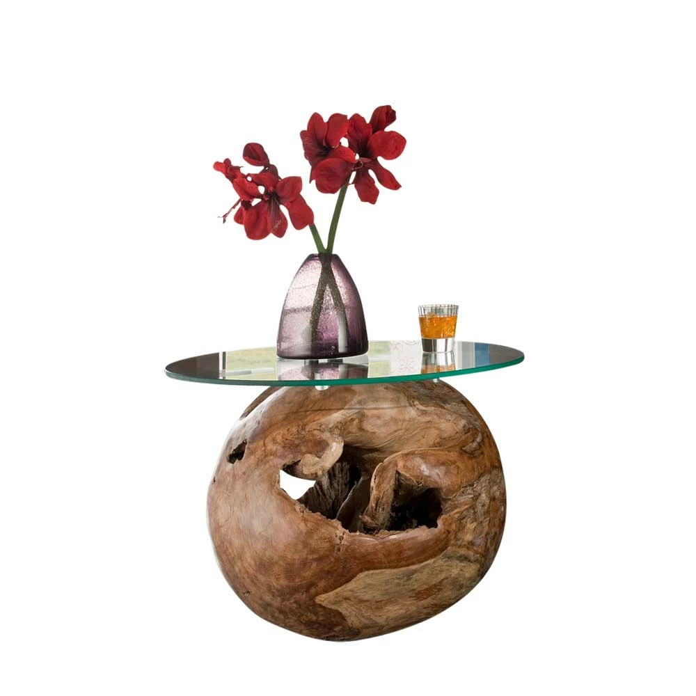 - Natürlicher Teak-Wurzel Couchtisch mit Glasplatte
