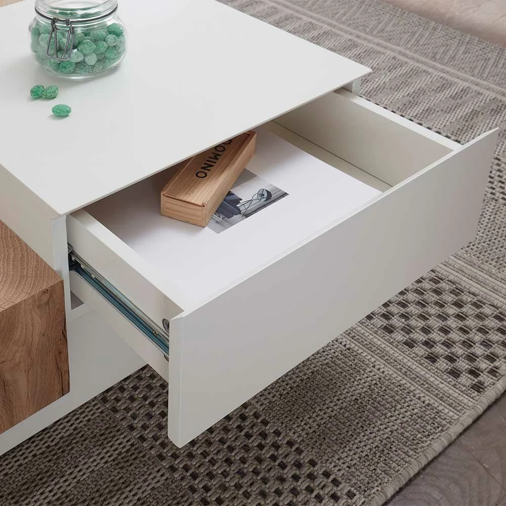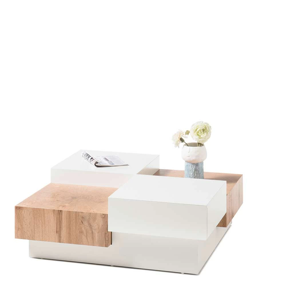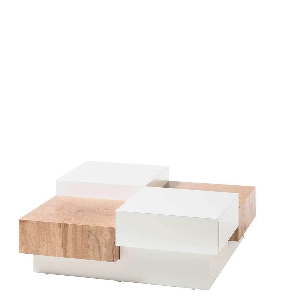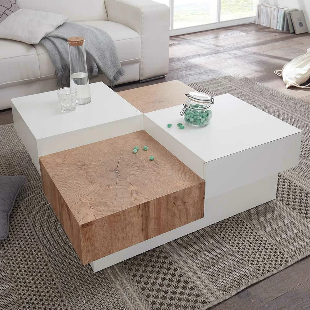 - Außergewöhnlicher Couchtisch in Weiß und Eichefarben