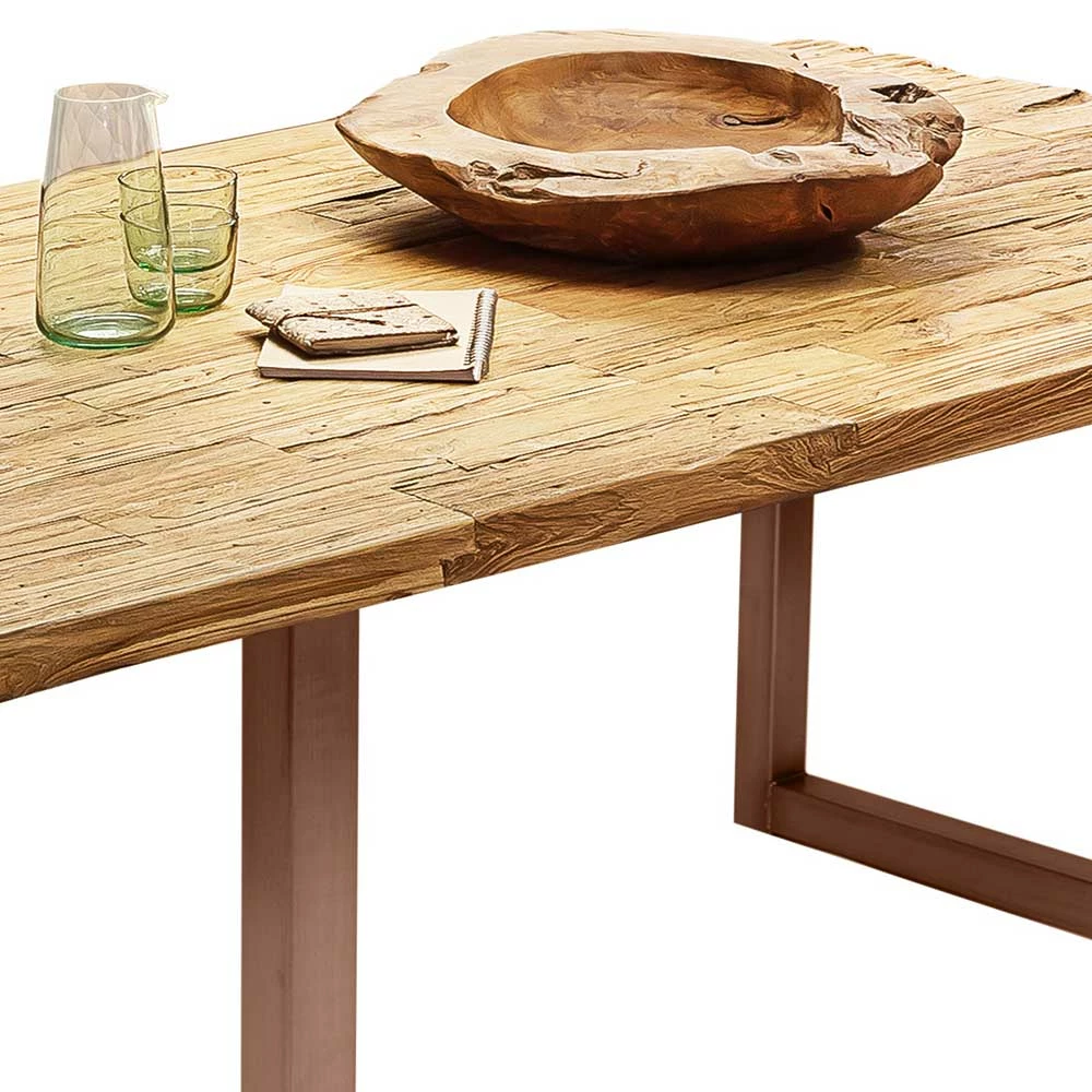 - Exklusiver Esstisch in Teak Naturfarben und Antikbraun