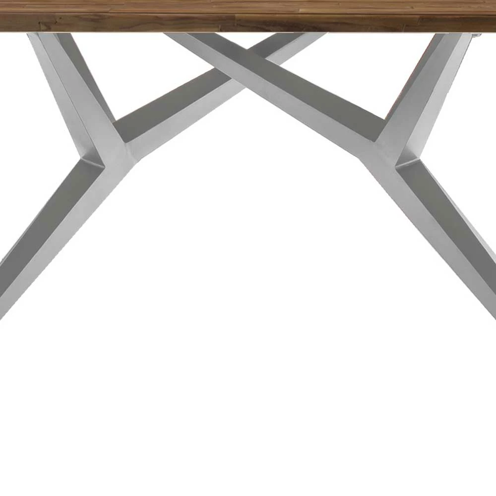 - Wirkungsvoller Esstisch in Teak Natur und Antiksilberfarben