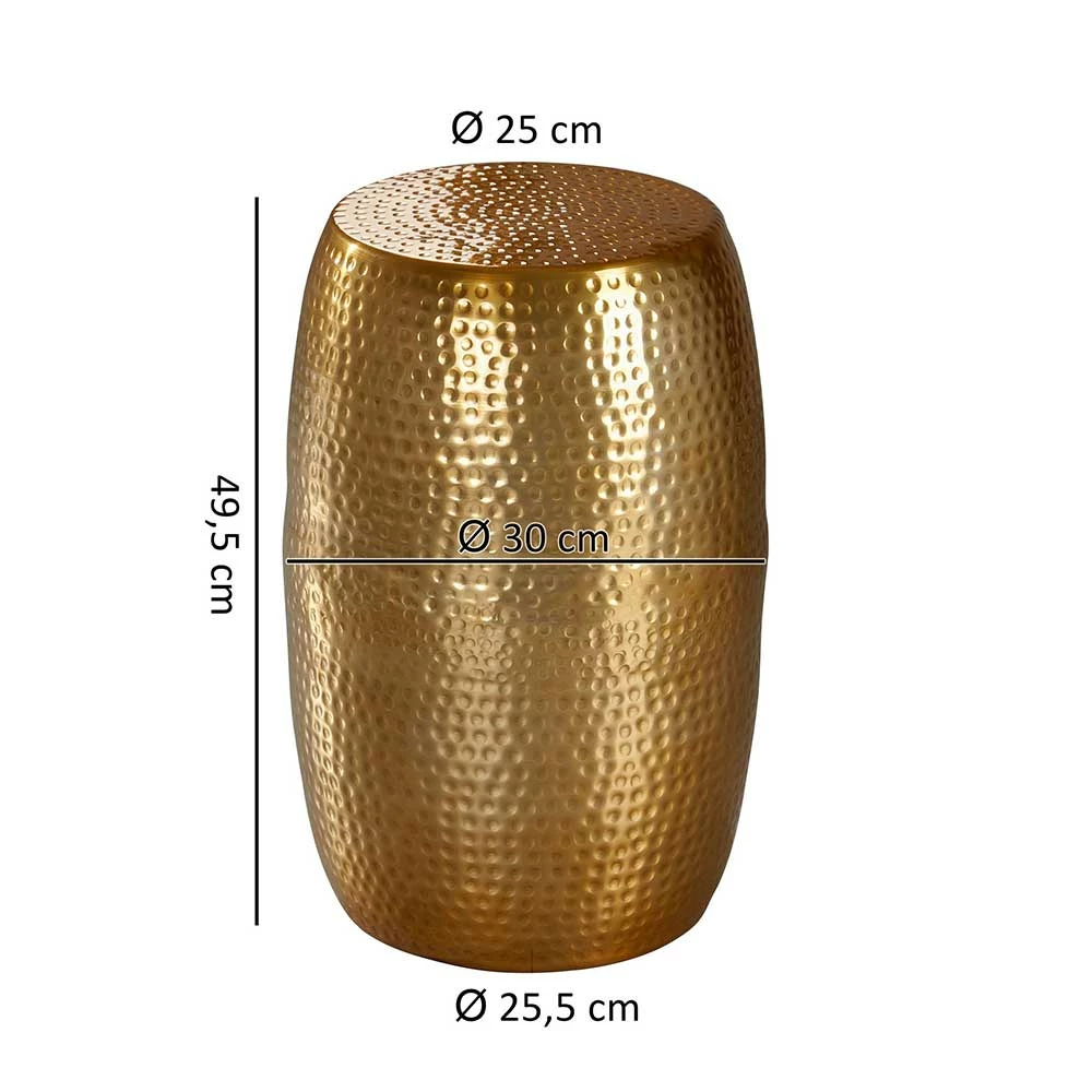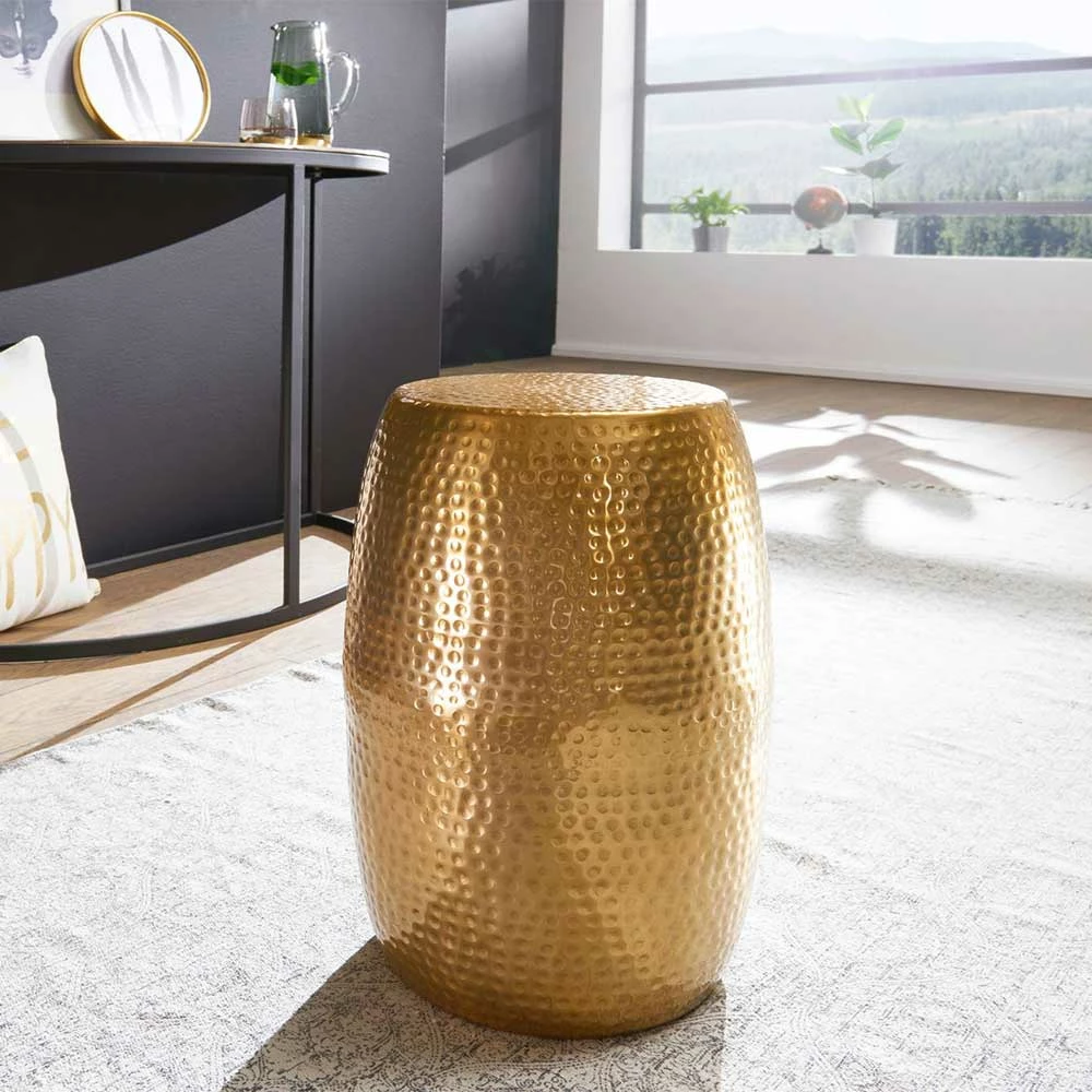 Tonnenförmiger Beistelltisch Aus Alu In Gold – Nathalie